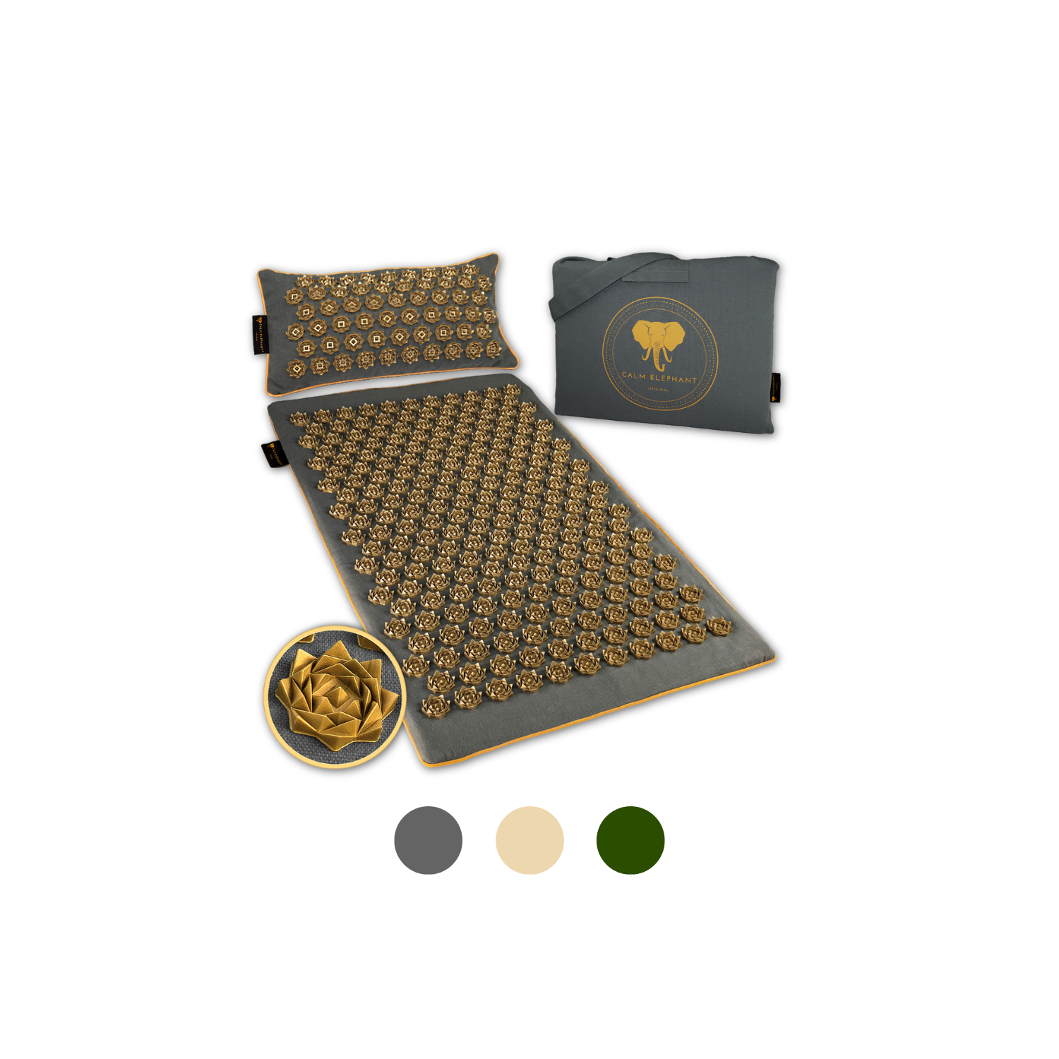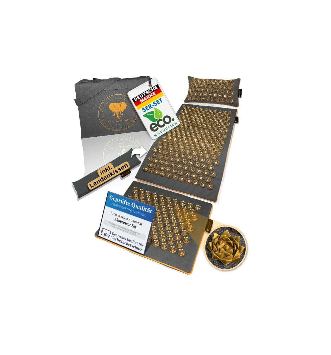 Jedes unserer Produkte ist sorgfältig durchdacht und entwickelt, um dir maximalen Nutzen und Komfort zu bieten. Egal ob du eine klassische Akupressurmatte, eine innovative Massagematte oder spezielle Zusatzprodukte wie eine Knierolle suchst – bei CALM ELEPHANT findest du genau das, was zu deinem Alltag passt.